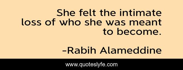 This page presents the quote "She felt the intimate loss of who she was meant to become.". Author of this quote is Rabih Alameddine. This quote is about nostalgia, destiny, regret, patriarchy,.