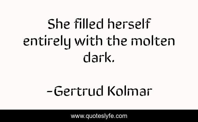 This page presents the quote "She filled herself entirely with the molten dark.". Author of this quote is Gertrud Kolmar. This quote is about shadows, self,.