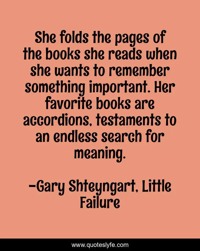 "Gary Shteyngart, Little Failure Quotes." Quoteslyfe.com, 2025. Fri. 05 Dec. 2025. <https://www.quoteslyfe.com/quote/She-folds-the-pages-of-the-books-142436>.