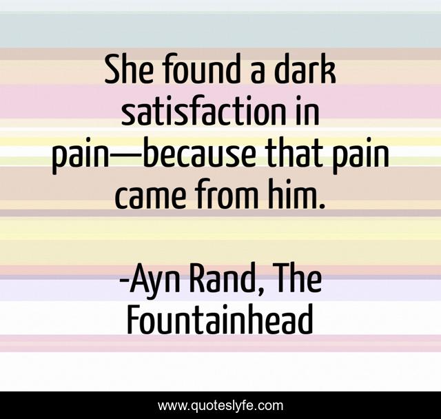 "Ayn Rand, The Fountainhead Quotes." Quoteslyfe.com, 2025. Sun. 07 Dec. 2025. <https://www.quoteslyfe.com/quote/She-found-a-dark-satisfaction-in-pain-76442>.