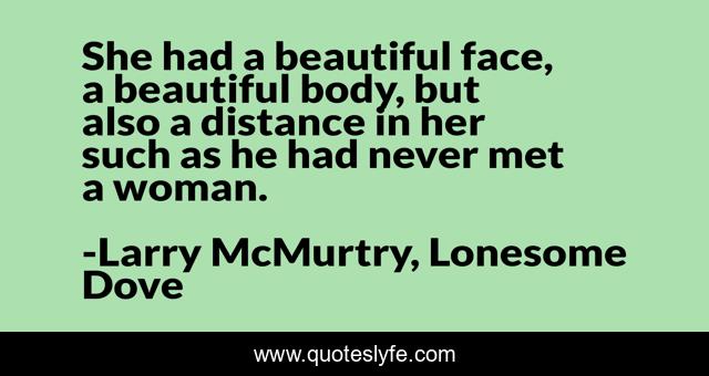This page presents the quote "She had a beautiful face, a beautiful body, but also a distance in her such as he had never met a woman.". Author of this quote is Larry McMurtry, Lonesome Dove. This quote is about beautiful, woman, beautiful-face, beautiful-body, face, pretty,.