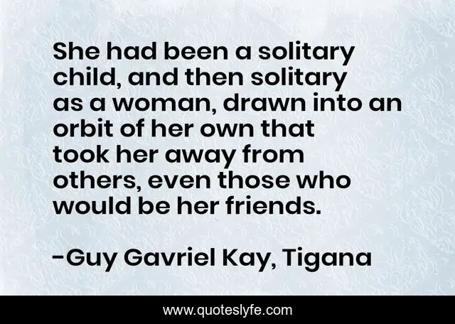 "Guy Gavriel Kay, Tigana Quotes." Quoteslyfe.com, 2025. Tue. 09 Dec. 2025. <https://www.quoteslyfe.com/quote/She-had-been-a-solitary-child-and-214603>.