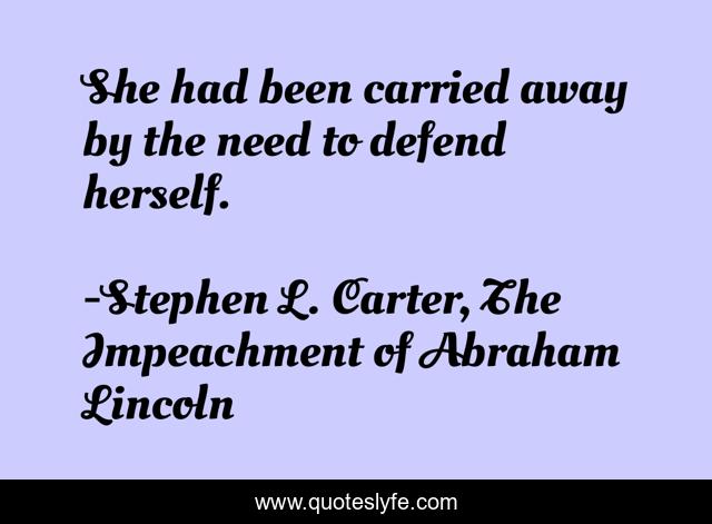 "Stephen L. Carter, The Impeachment of Abraham Lincoln Quotes." Quoteslyfe.com, 2025. Tue. 09 Dec. 2025. <https://www.quoteslyfe.com/quote/She-had-been-carried-away-by-the-186378>.