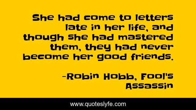 "Robin Hobb, Fool's Assassin Quotes." Quoteslyfe.com, 2025. Sat. 06 Dec. 2025. <https://www.quoteslyfe.com/quote/She-had-come-to-letters-late-in-67088>.