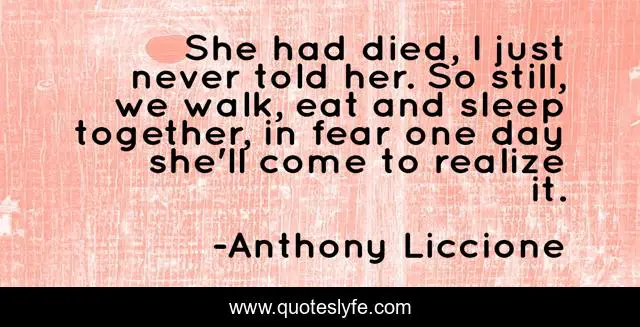 "Anthony Liccione Quotes." Quoteslyfe.com, 2025. Sat. 06 Dec. 2025. <https://www.quoteslyfe.com/quote/She-had-died-I-just-never-told-120513>.
