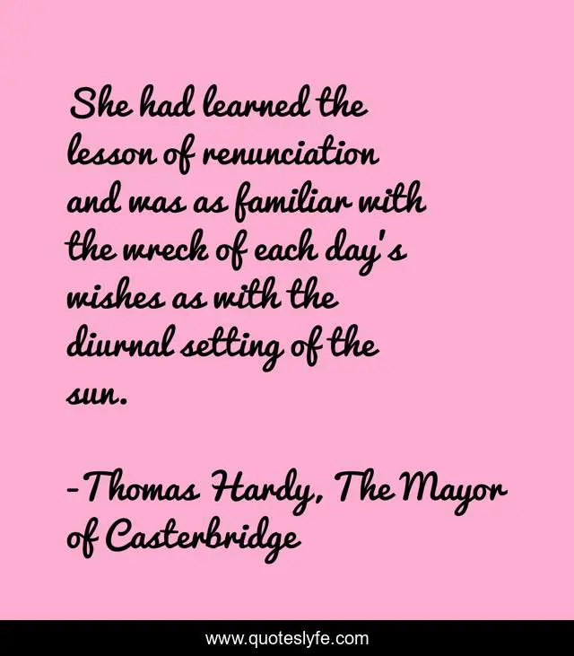 "Thomas Hardy, The Mayor of Casterbridge Quotes." Quoteslyfe.com, 2025. Fri. 05 Dec. 2025. <https://www.quoteslyfe.com/quote/She-had-learned-the-lesson-of-renunciation-244397>.