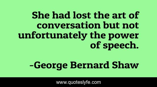 "George Bernard Shaw Quotes." Quoteslyfe.com, 2025. Mon. 08 Dec. 2025. <https://www.quoteslyfe.com/quote/She-had-lost-the-art-of-conversation-262099>.