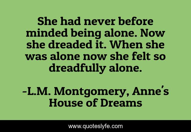 This page presents the quote "She had never before minded being alone. Now she dreaded it. When she was alone now she felt so dreadfully alone.". Author of this quote is L.M. Montgomery, Anne's House of Dreams. This quote is about l-m-montgomery, loneliness,.