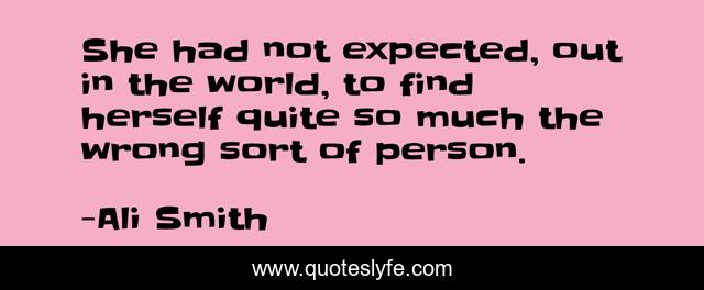 This page presents the quote "She had not expected, out in the world, to find herself quite so much the wrong sort of person.". Author of this quote is Ali Smith. This quote is about person, wrong, help, world,.