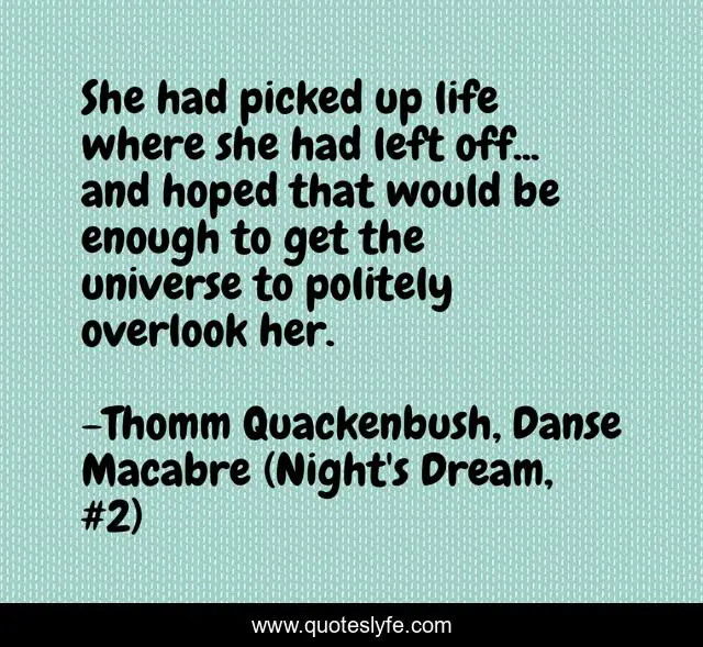 "Thomm Quackenbush, Danse Macabre (Night's Dream, #2) Quotes." Quoteslyfe.com, 2025. Mon. 08 Dec. 2025. <https://www.quoteslyfe.com/quote/She-had-picked-up-life-where-she-169895>.