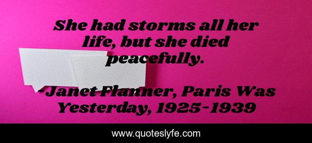 "Janet Flanner, Paris Was Yesterday, 1925-1939 Quotes." Quoteslyfe.com, 2025. Mon. 08 Dec. 2025. <https://www.quoteslyfe.com/quote/She-had-storms-all-her-life-but-21650>.