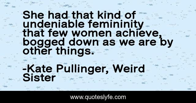 This page presents the quote "She had that kind of undeniable femininity that few women achieve, bogged down as we are by other things.". Author of this quote is Kate Pullinger, Weird Sister. .