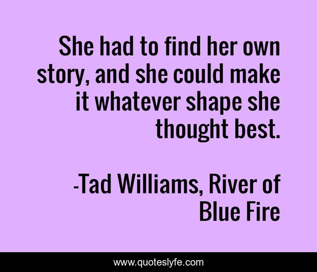 "Tad Williams, River of Blue Fire Quotes." Quoteslyfe.com, 2025. Fri. 05 Dec. 2025. <https://www.quoteslyfe.com/quote/She-had-to-find-her-own-story-112554>.