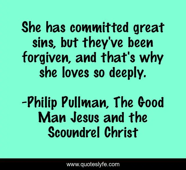 "Philip Pullman, The Good Man Jesus and the Scoundrel Christ Quotes." Quoteslyfe.com, 2025. Fri. 05 Dec. 2025. <https://www.quoteslyfe.com/quote/She-has-committed-great-sins-but-they-121887>.