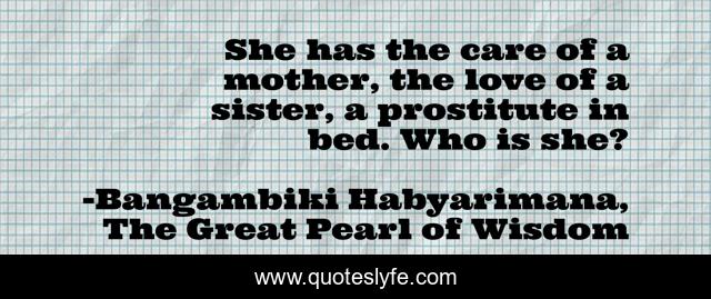 "Bangambiki Habyarimana, The Great Pearl of Wisdom Quotes." Quoteslyfe.com, 2025. Sat. 06 Dec. 2025. <https://www.quoteslyfe.com/quote/She-has-the-care-of-a-mother-207987>.