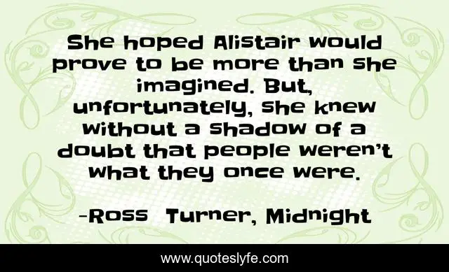"Ross Turner, Midnight Quotes." Quoteslyfe.com, 2025. Sat. 06 Dec. 2025. <https://www.quoteslyfe.com/quote/She-hoped-Alistair-would-prove-to-be-51774>.