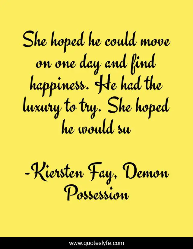 "Kiersten Fay, Demon Possession Quotes." Quoteslyfe.com, 2025. Sat. 06 Dec. 2025. <https://www.quoteslyfe.com/quote/She-hoped-he-could-move-on-one-132288>.