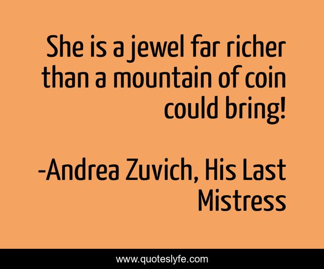 "Andrea Zuvich, His Last Mistress Quotes." Quoteslyfe.com, 2025. Tue. 09 Dec. 2025. <https://www.quoteslyfe.com/quote/She-is-a-jewel-far-richer-than-213805>.