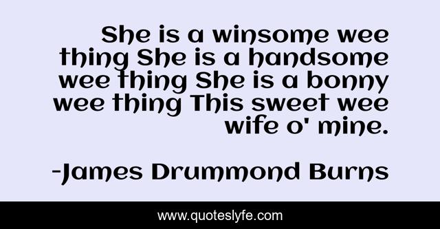 This page presents the quote "She is a winsome wee thing She is a handsome wee thing She is a bonny wee thing This sweet wee wife o' mine.". Author of this quote is James Drummond Burns. .