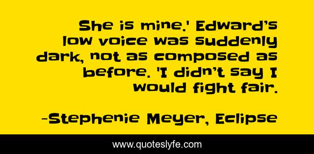 "Stephenie Meyer, Eclipse Quotes." Quoteslyfe.com, 2025. Mon. 08 Dec. 2025. <https://www.quoteslyfe.com/quote/She-is-mine-Edward-s-low-voice-187993>.