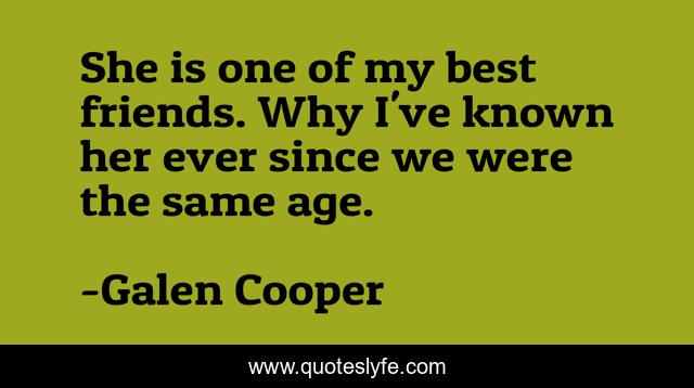This page presents the quote "She is one of my best friends. Why I've known her ever since we were the same age.". Author of this quote is Galen Cooper. .