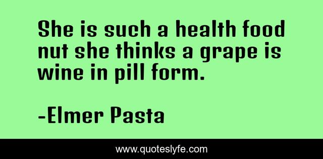 "Elmer Pasta Quotes." Quoteslyfe.com, 2025. Mon. 08 Dec. 2025. <https://www.quoteslyfe.com/quote/She-is-such-a-health-food-nut-267764>.