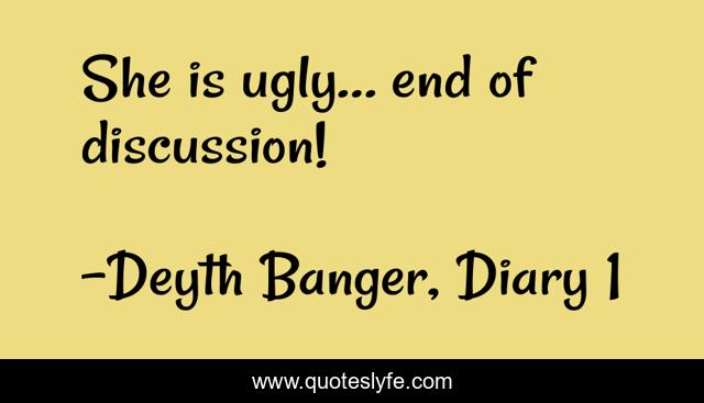 "Deyth Banger, Diary 1 Quotes." Quoteslyfe.com, 2025. Fri. 05 Dec. 2025. <https://www.quoteslyfe.com/quote/She-is-ugly-end-of-discussion-257454>.