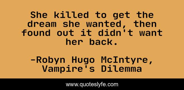 "Robyn Hugo McIntyre, Vampire's Dilemma Quotes." Quoteslyfe.com, 2025. Sat. 06 Dec. 2025. <https://www.quoteslyfe.com/quote/She-killed-to-get-the-dream-she-146537>.