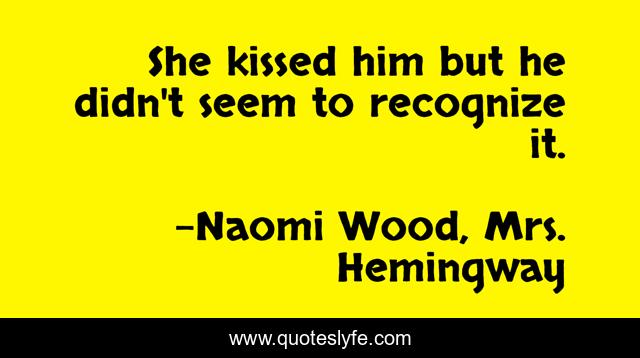 This page presents the quote "She kissed him but he didn't seem to recognize it.". Author of this quote is Naomi Wood, Mrs. Hemingway. This quote is about hemingway, love, sorrow, affection,.