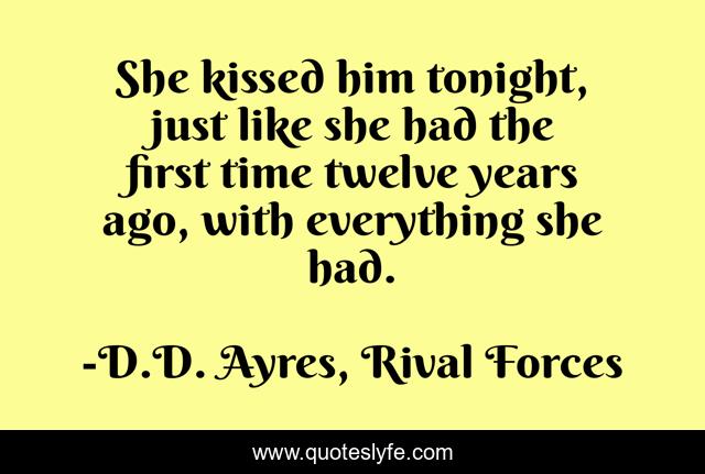"D.D. Ayres, Rival Forces Quotes." Quoteslyfe.com, 2025. Sat. 06 Dec. 2025. <https://www.quoteslyfe.com/quote/She-kissed-him-tonight-just-like-she-154856>.