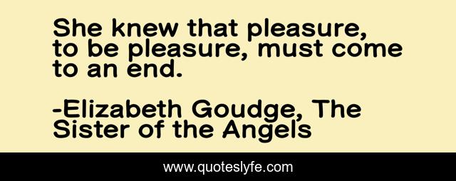 This page presents the quote "She knew that pleasure, to be pleasure, must come to an end.". Author of this quote is Elizabeth Goudge, The Sister of the Angels. .