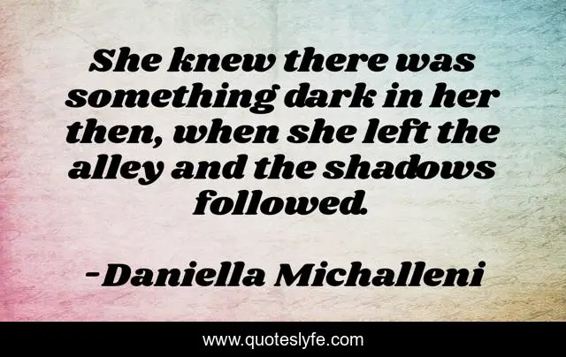 This page presents the quote "She knew there was something dark in her then, when she left the alley and the shadows followed.". Author of this quote is Daniella Michalleni. This quote is about dark, darkness, demons,.