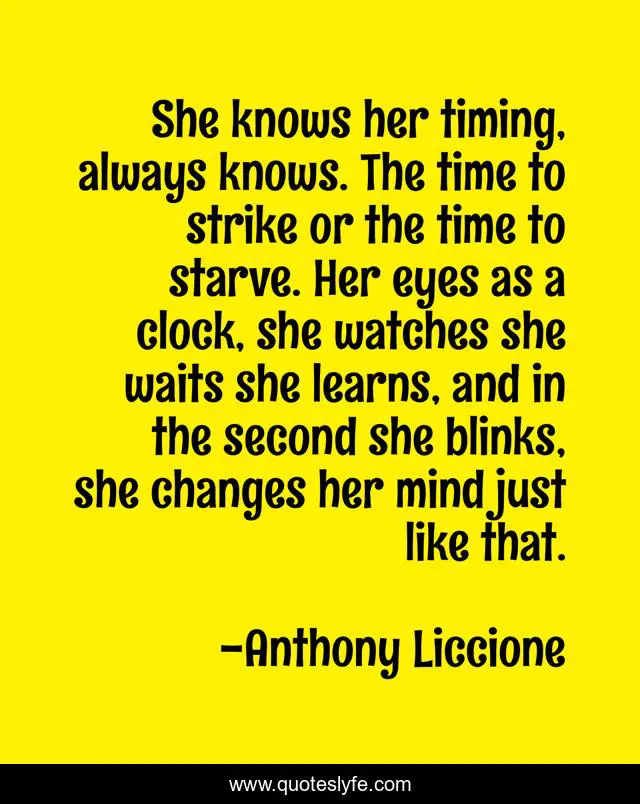 "Anthony Liccione Quotes." Quoteslyfe.com, 2025. Sun. 07 Dec. 2025. <https://www.quoteslyfe.com/quote/She-knows-her-timing-always-knows-The-59987>.