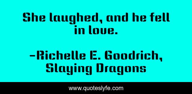 This page presents the quote "She laughed, and he fell in love.". Author of this quote is Richelle E. Goodrich, Slaying Dragons. This quote is about falling-in-love, love, richelle-e-goodrich, richelle, richelle-goodrich, affection, loving,.