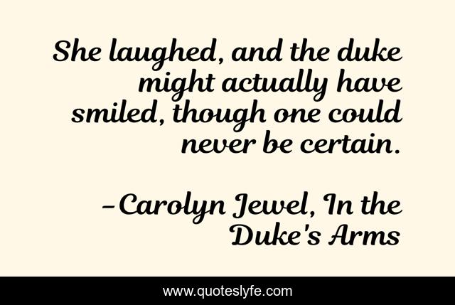 "Carolyn Jewel, In the Duke's Arms Quotes." Quoteslyfe.com, 2025. Sat. 06 Dec. 2025. <https://www.quoteslyfe.com/quote/She-laughed-and-the-duke-might-actually-213681>.