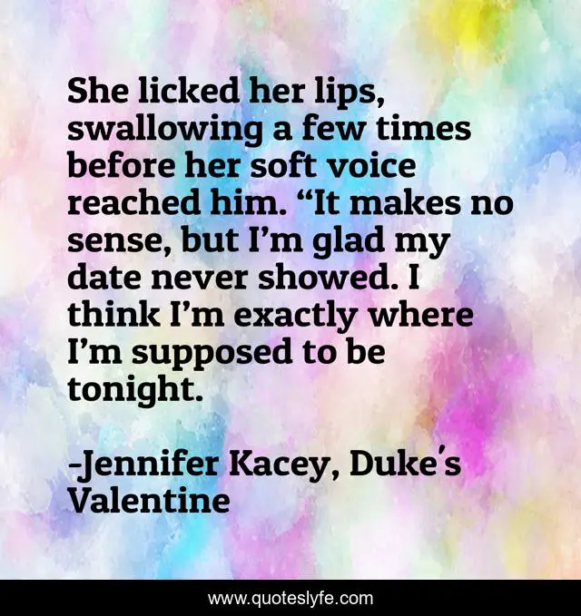"Jennifer Kacey, Duke's Valentine Quotes." Quoteslyfe.com, 2025. Fri. 05 Dec. 2025. <https://www.quoteslyfe.com/quote/She-licked-her-lips-swallowing-a-few-215647>.