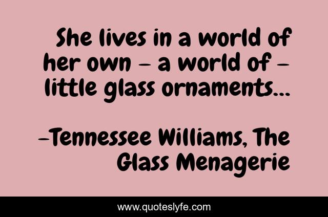 This page presents the quote "She lives in a world of her own – a world of – little glass ornaments…". Author of this quote is Tennessee Williams, The Glass Menagerie. This quote is about isolation, loneliness, loner, ornaments, world,.