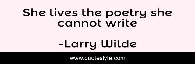 This page presents the quote "She lives the poetry she cannot write". Author of this quote is Larry Wilde. This quote is about writers, poetry,.