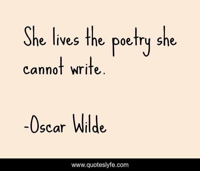 This page presents the quote "She lives the poetry she cannot write.". Author of this quote is Oscar Wilde. This quote is about oscar-wilde, poetry,.