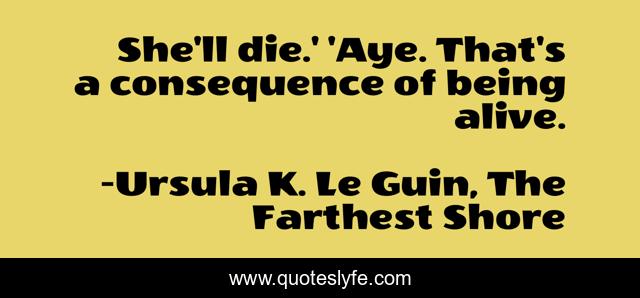"Ursula K. Le Guin, The Farthest Shore Quotes." Quoteslyfe.com, 2025. Mon. 08 Dec. 2025. <https://www.quoteslyfe.com/quote/She-ll-die-Aye-That-s-a-20977>.