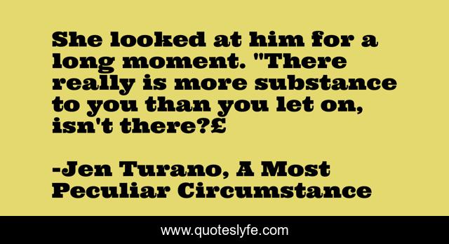 This page presents the quote "She looked at him for a long moment. "There really is more substance to you than you let on, isn't there?£". Author of this quote is Jen Turano, A Most Peculiar Circumstance. .