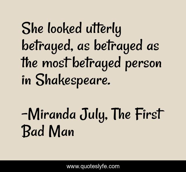 This page presents the quote "She looked utterly betrayed, as betrayed as the most betrayed person in Shakespeare.". Author of this quote is Miranda July, The First Bad Man. This quote is about betrayal, shakespeare, humour,.