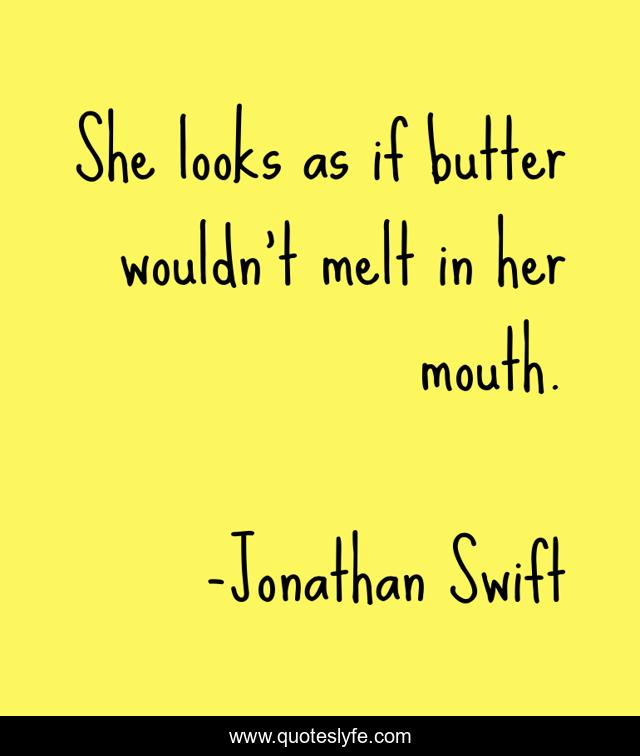 This page presents the quote "She looks as if butter wouldn't melt in her mouth.". Author of this quote is Jonathan Swift. .