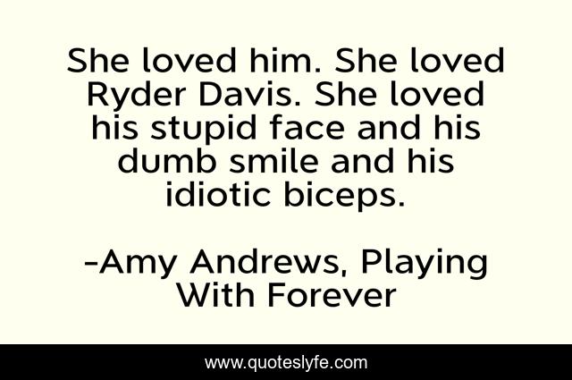This page presents the quote "She loved him. She loved Ryder Davis. She loved his stupid face and his dumb smile and his idiotic biceps.". Author of this quote is Amy Andrews, Playing With Forever. This quote is about quotes, amy-andrews, ryder, sydney-smoke-rugby-series, sports-romance,.