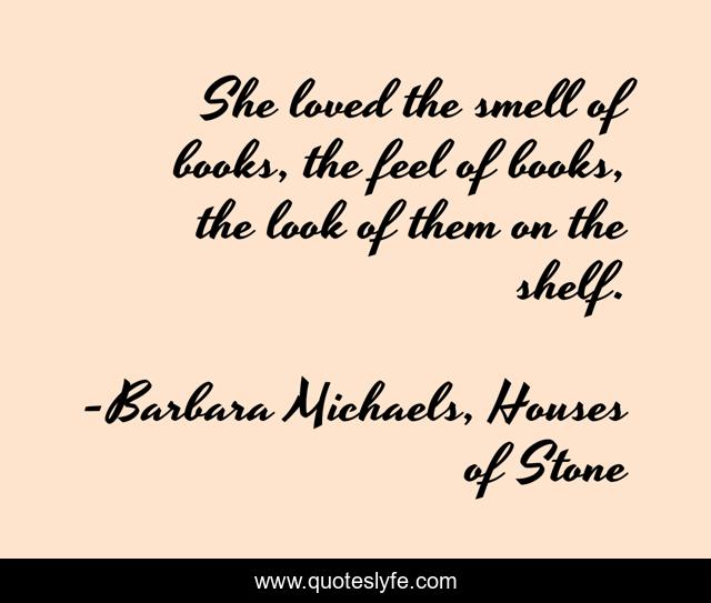 "Barbara Michaels, Houses of Stone Quotes." Quoteslyfe.com, 2025. Fri. 05 Dec. 2025. <https://www.quoteslyfe.com/quote/She-loved-the-smell-of-books-the-43265>.