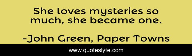 "John Green, Paper Towns Quotes." Quoteslyfe.com, 2025. Tue. 09 Dec. 2025. <https://www.quoteslyfe.com/quote/She-loves-mysteries-so-much-she-became-146425>.