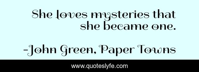 "John Green, Paper Towns Quotes." Quoteslyfe.com, 2025. Fri. 05 Dec. 2025. <https://www.quoteslyfe.com/quote/She-loves-mysteries-that-she-became-one-146661>.