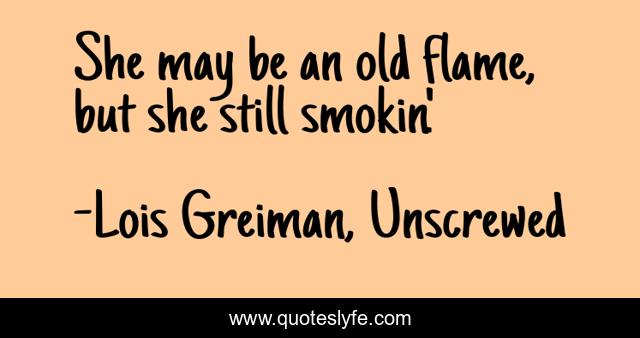 This page presents the quote "She may be an old flame, but she still smokin'.". Author of this quote is Lois Greiman, Unscrewed. This quote is about mystery, chick-lit, humor,.