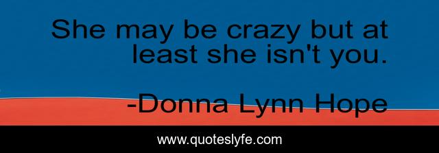 "Donna Lynn Hope Quotes." Quoteslyfe.com, 2025. Fri. 05 Dec. 2025. <https://www.quoteslyfe.com/quote/She-may-be-crazy-but-at-least-238257>.