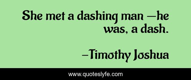 "Timothy Joshua Quotes." Quoteslyfe.com, 2025. Fri. 05 Dec. 2025. <https://www.quoteslyfe.com/quote/She-met-a-dashing-man-he-was-127704>.